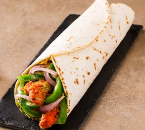 Here is a recipe for a perfect ‘to-go’ meal! This dish, made with chicken breast coated in an eggwash and then in refined flour spiced with paprika, oregano, salt, pepper and breadcrumbs, shallow fried till crisp and fried onions, wrapped in heated refined flour wraps, with the tangy mayo, lettuce and sliced bell peppers, is a complete meal in itself. The crispy fillings and vegetables coated with creamy mayo give a nice texture and flavour to the soft flour wraps. A great lunch idea for school or work or even a road trip!