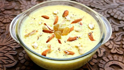 Kheer is a traditional and popular Indian dessert, made with milk, rice and sugar. From up north to down south, from the east to the west, kheer is known by different names throughout the country and is a quintessential dish in an Indian wedding menu. There are different types of kheer, this recipe gives you the one for the most common and traditional kheer made in Indian households for ceremonies and as offerings during various pujas. Milk is boiled to a creamy consistency to which rice and coconut are added. The flavour is enhanced by saffron strands and cardamom. The rice and coconut cooked in the milk gives the kheer it’s distinct texture and taste. Those with a sweet-tooth can add more sugar, and the calorie-conscious ones can add lesser. Enjoy this Indian rice pudding after garnishing with almonds and pistachios. It is really versatile too – it can be served hot, warm or cold!!
