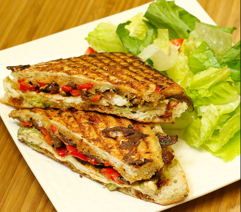 An out of the box Mexican meal made with the traditional staples of Mexican cuisine!! This multi-layered, grilled sandwich is stuffed with refried kidney beans (cooked kidney beans which are mashed and simmered in spices), Pico de Gallo (a chunky salsa of sorts) and avocado slices. In addition, it fulfills all the macro nutrient requirements – carbohydrates from bread and beans, protein from beans and good fat from avocado. Tasty, easy to whip up and healthy!!